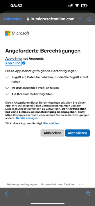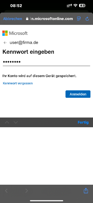 Du wirst auf eine Microsoft-Anmeldeseite weitergeleitet. Gebe dein Passwort ein und bestätige.